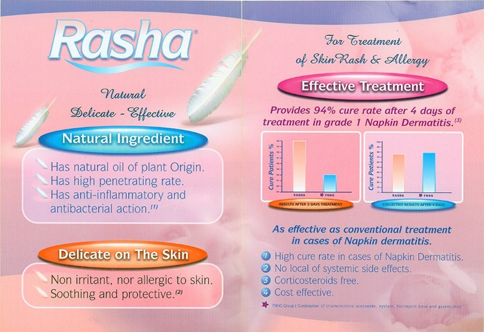 و إنتاج الدواء الثاني و هو مرهم رشا (Rasha ) لعلاج الالتهابات الجلدية و الحساسية وطرح في الاسواق مع نهاية عام 2001 وقد ثبت من الابحاث الاكلينيكية أن مرهم رشا يعالج إلتهابات كوافيل الاطفال بكفاءة تعادل كفاءة المركبات الكورتوزونية و لكن دون اثار جانبية ، وقد نوقش هذا البحث في مؤتمر طب الاطفال بكلية طب الازهر بنين في مارس عام 2002